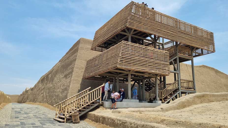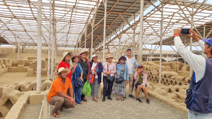 2:30 p.m El Tour continuará hacia el norte para visitar; el Museo de Sitio Chan Chan, la zona arqueológica de la antigua «Ciudad de Chanchan» ahora llamado Palacio Nikan, y para terminar parada en la playa histórica de Huanchaco.